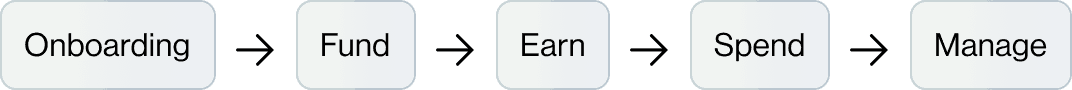 Decomposed post-onboarding into Card, Fund, Earn, Pay flows