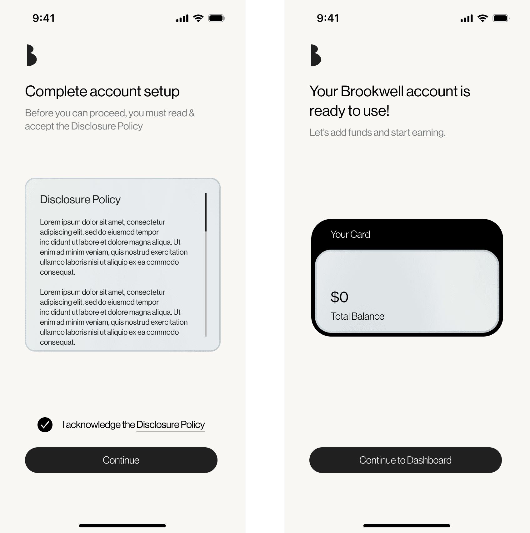 Brookwell is a fintech app that combines a FDIC-insured checking account with a high-yield stablecoin-powered savings account, offering users a seamless way to spend, save, and earn in one place. As Project Manager and Design Lead, I led a team of designers to create high-fidelity flows for Brookwell’s core experience, from onboarding through post-deposit money movement.