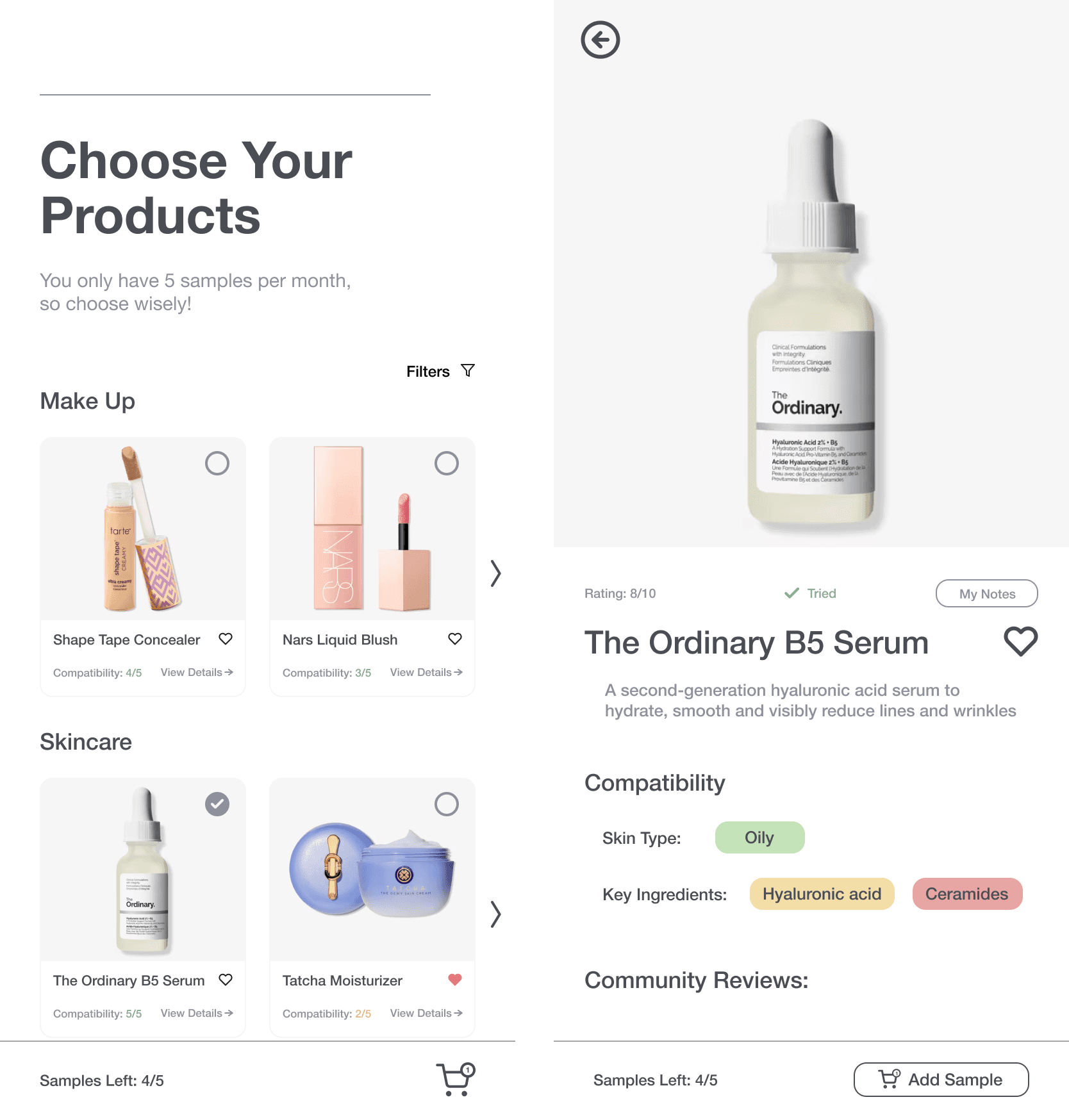For my design innovation course at UC Berkeley, my team and I designed an end-to-end mobile experience that addresses how we might reduce waste and frustration in the beauty industry by helping users find products that actually work for them, the first time around.